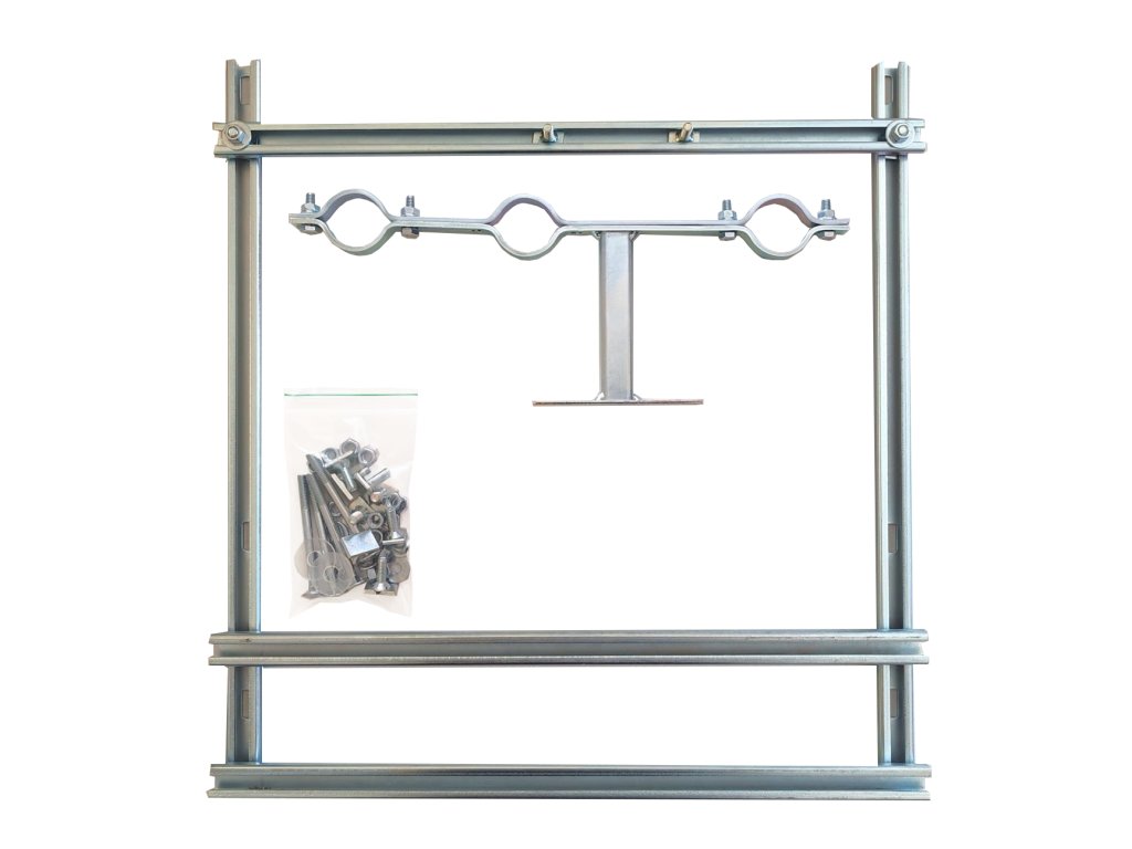 Tento instalační rám je nezbytným doplňkem pro profesionální instalaci plynových přípojek a splňuje veškeré normy a bezpečnostní požadavky plynárenských společností.